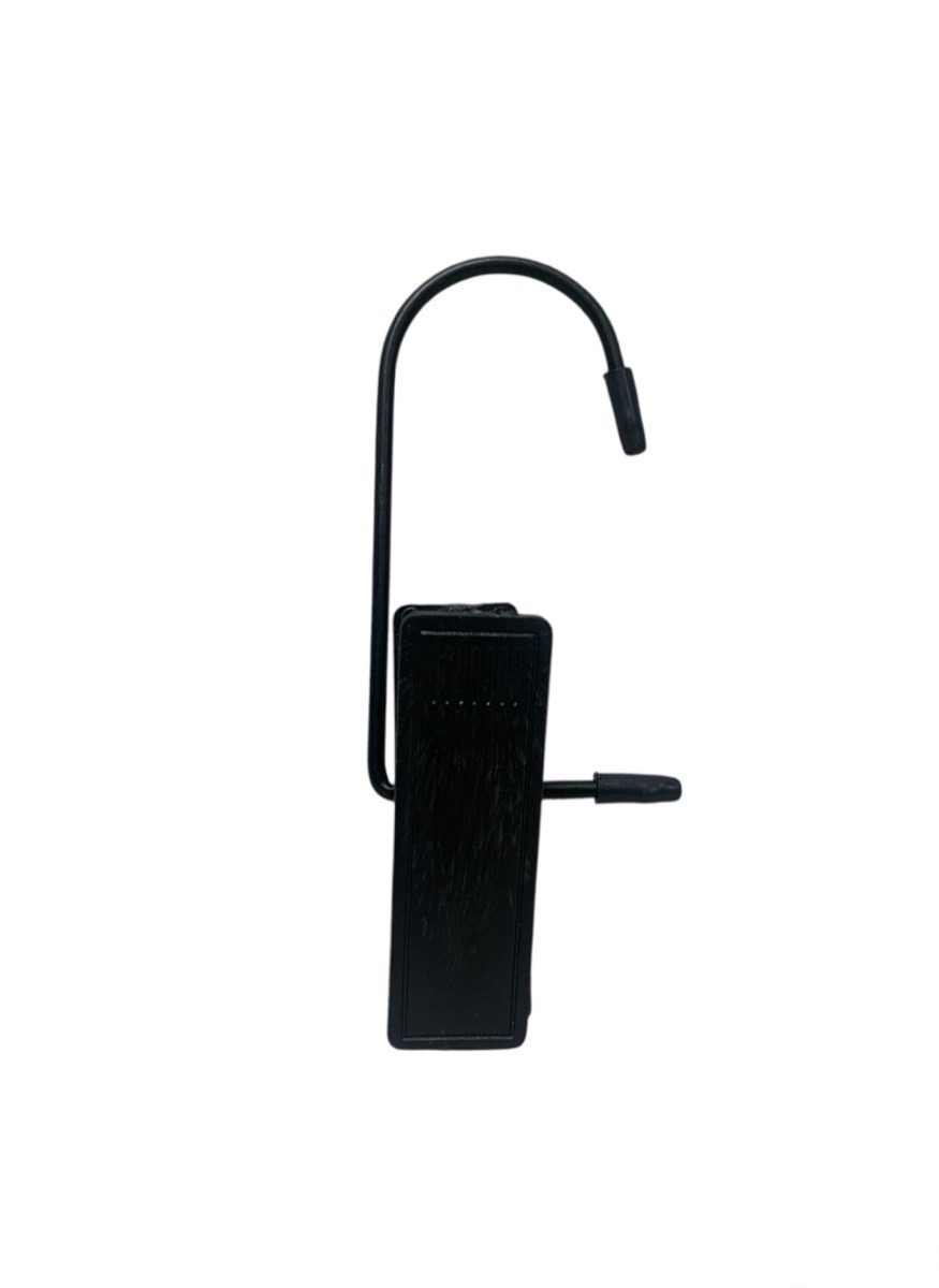 Gancho con pinza, 12,5cm alto. Se trata de un tipo de percha ideal para accesorios como calcetines, pañuelos… Material: plástico color negro. *HASTA FIN DE EXISTENCIAS*