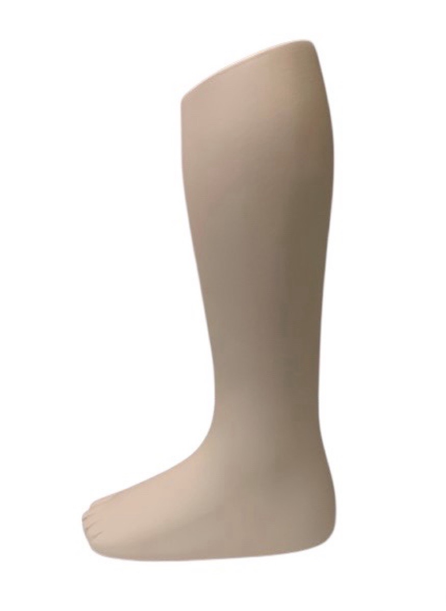 Pie izquierdo de niño/a de edad aproximada de 8 años. Fabricado en poliuretano con resinas y acabado pintado en color carne. Posibilidad de cambiar el color. Ideal para medias y calcetines de todo tipo.